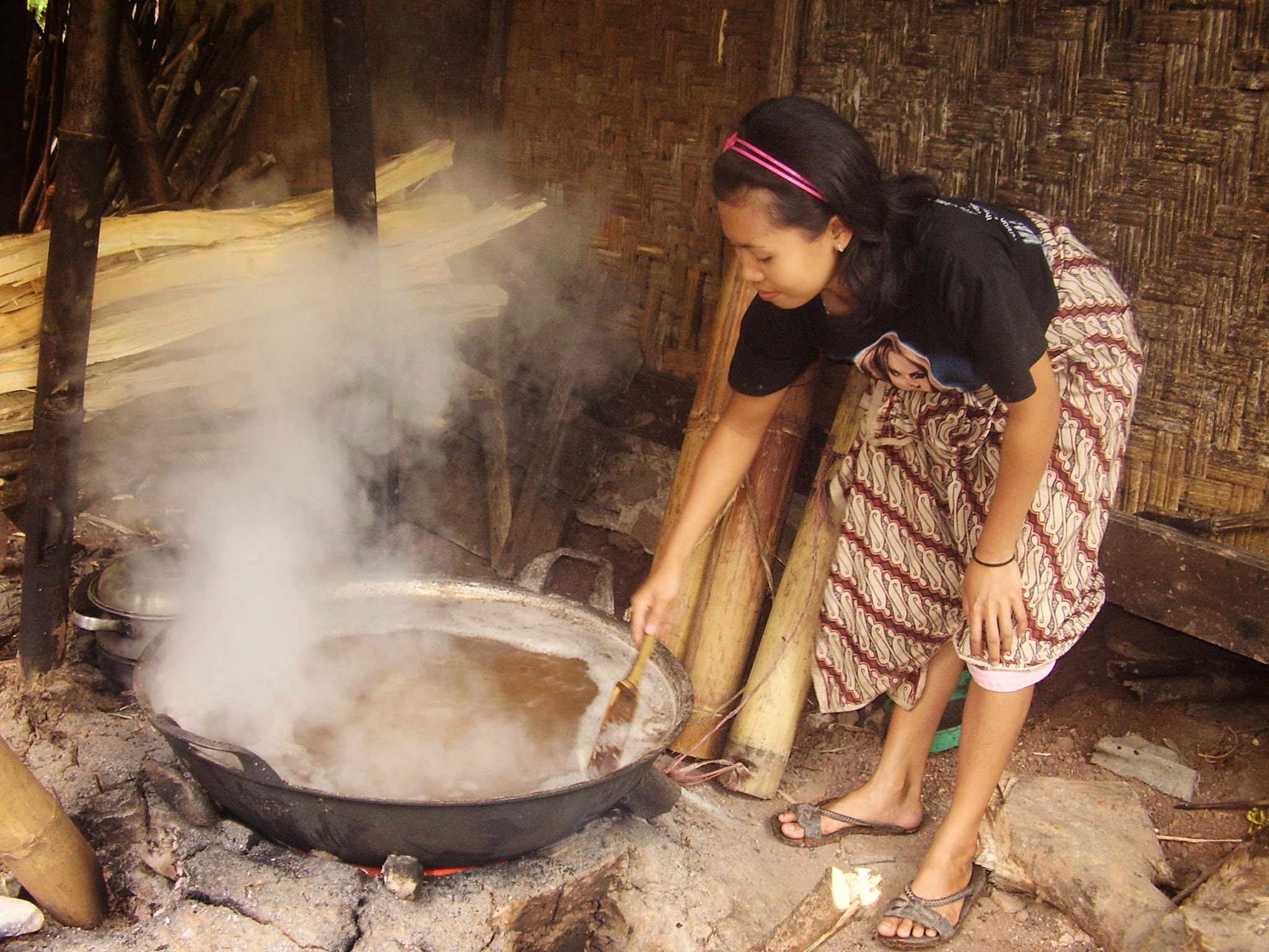 - Pemasakana. Nira yang telah disaring kemudian dididihkan di dalam wajan dengan api sedang sambil diaduk-aduk. Jika apinya terlalu besar nira akan cepat hangus dan gula bisa terasa pahit. Busa dan kotoran yang mengapung selama pendidihan dibuang.