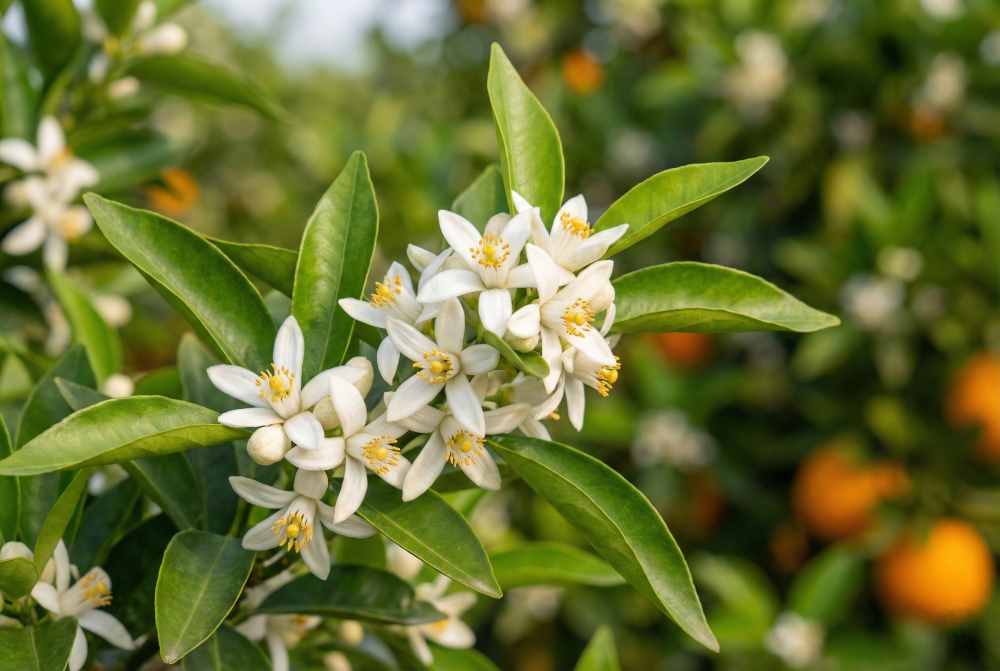 Teh bunga jeruk atau Orange Blossom berasal dari pohon Citrus aurantium atau Citrus sinensis. Bunga putih dengan serbuk sari kuning ini mengandung senyawa flavonoid seperti hesperidin yang memiliki efek sedatif ringan. Studi menunjukkan bahwa aroma dan kandungan bunga jeruk efektif membantu mengatasi insomnia dan kecemasan.